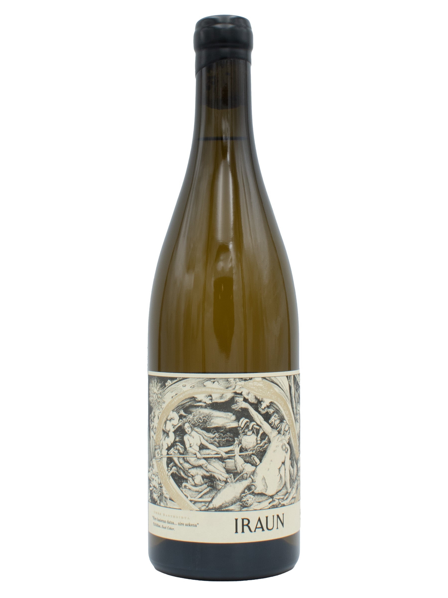 Iraun is Oxer’s tribute to his people and language (Euskera). The word “means to endure”. Despiteall obstacles and challenges, the Basque people persevered and they kept the oldest language in the world alive. In the label this is depicted as a Uroborus, a snake eating its own tail. The emblem of eternity. “In my beginning is my end,” T.S. Eliot.